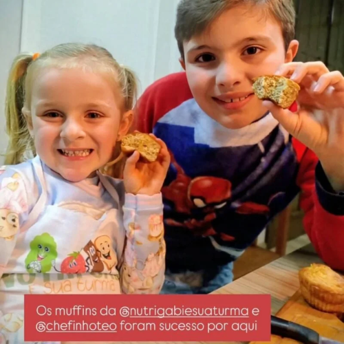 Foi uma experiência muito legal! Ambos sempre gostaram de ajudar, mas foi a primeira vez que eles fizeram tudo sozinhos. Aprenderam que um lanche gostoso e saudável pode ser feito rapidinho. O favorito aqui é o muffin de banana!